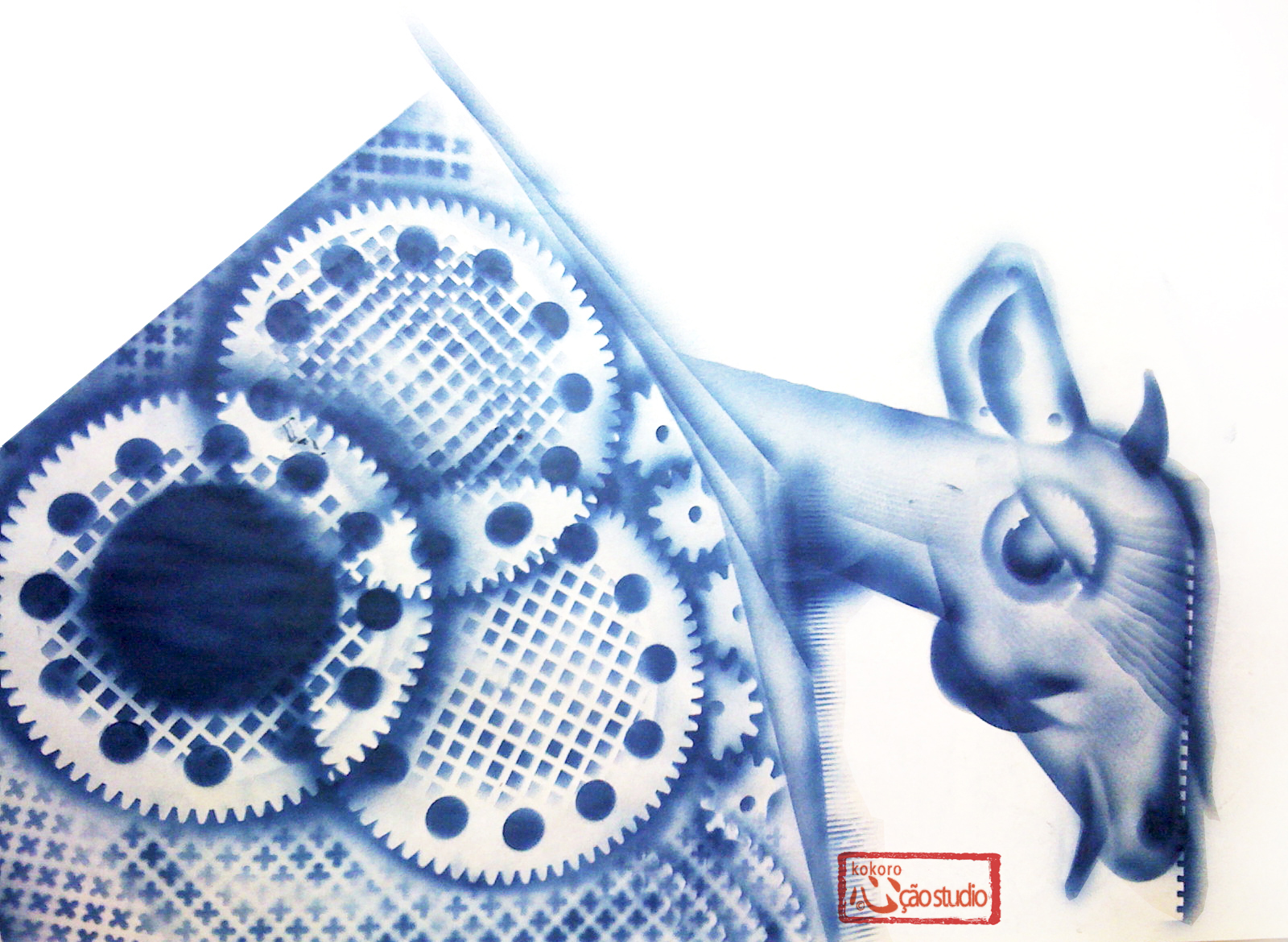 Two old illustrations with watercolor airbrush paints on paper. These sketches were made freehand and using some objects as templates. // Dos ilustraciones antiguas realizadas con acuarela para aerógrafo sobre papel. Fueron hechas a mano alzada utilizando diversos objetos como plantillas móviles.